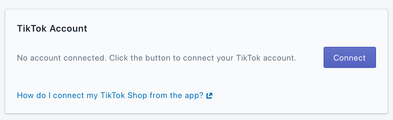 You will be asked to connect your TikTok Shop. Click on "Connect" to start the process.