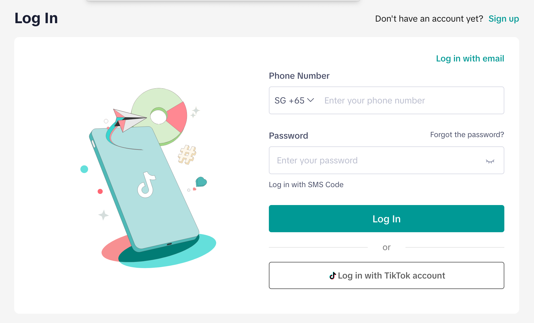 Clicking on Connect will take you to TikTok. You can fill in your Username and Password to continue